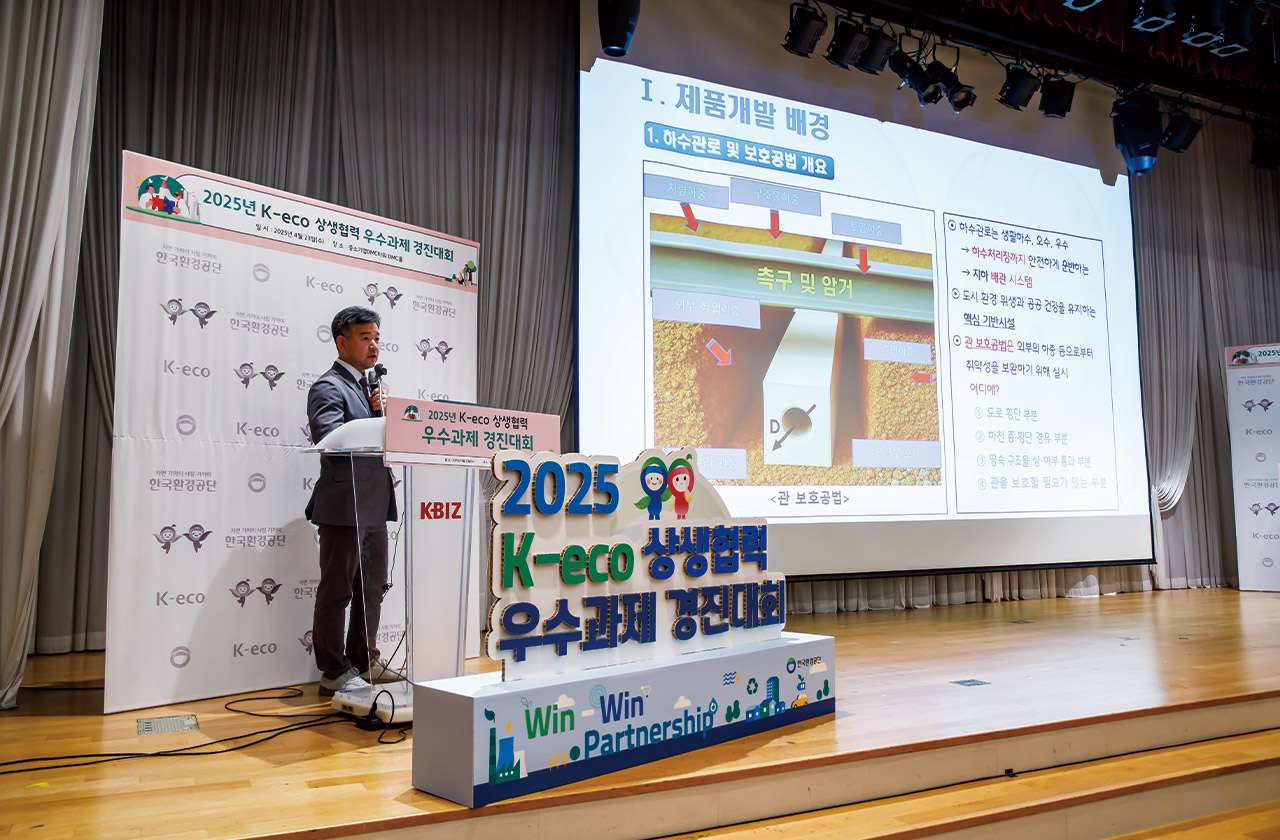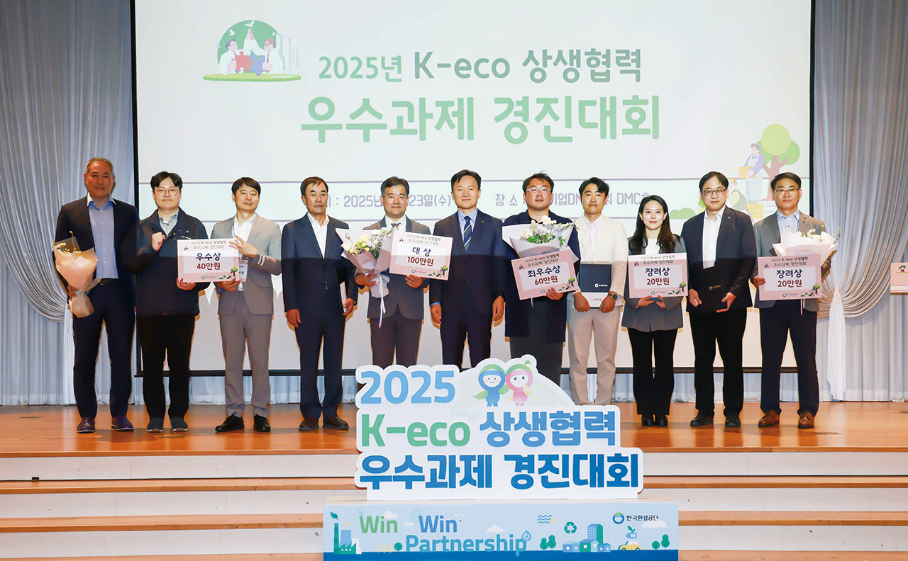 ‘K-eco 상생협력 우수과제 경진대회’가 열린 중소기업 DMC타워 DMC홀은 시작 전부터 뜨거운 열기로 가득했다. 참가 기업들의 우수 기술과 성과가 전시되어 참관객들의 관심이 집중됐기 때문이다. 발표에 대한