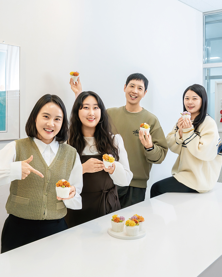 멀리서부터 웃음소리가 끊이질 않았다. 한가득 미소를 지으며 공방으로 들어선 이들은 김정은 차장, 윤성연 대리, 노선형 대리, 이예지 대리다. 네 사람은 “떡케이크 만들기 체험자 모집 게시글이 올라오자마자 ‘이건 꼭