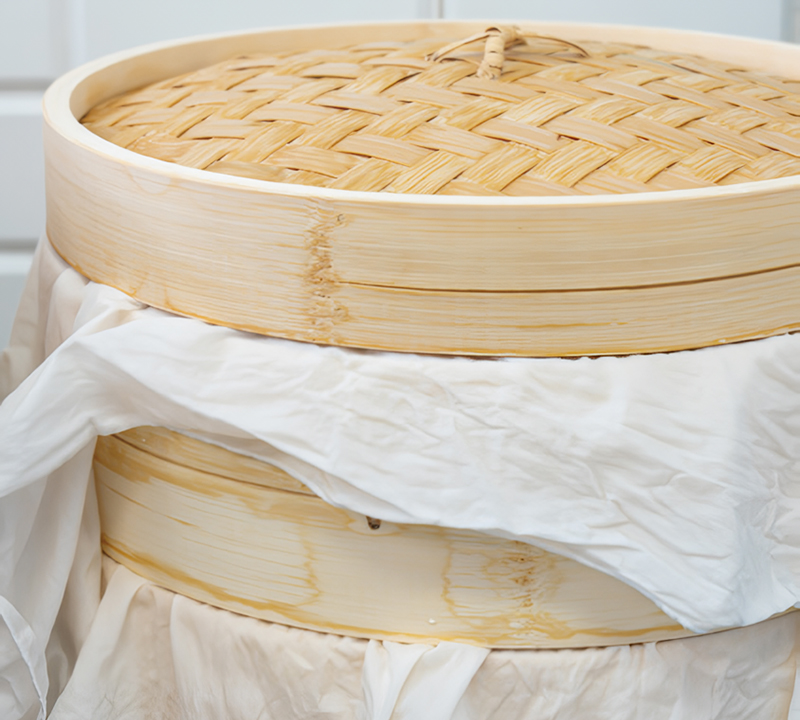 채운 후 그 위에 취향에 맞는 잼이나 스프레드를 올리고 다시 쌀가루로 덮습니다. 스크래퍼로 윗면을 정리한 뒤 유격을 줘서 무스링을 조심스럽게 빼내주세요. 그러고 나서 물솥에서 25분간 쪄줄 거예요.”