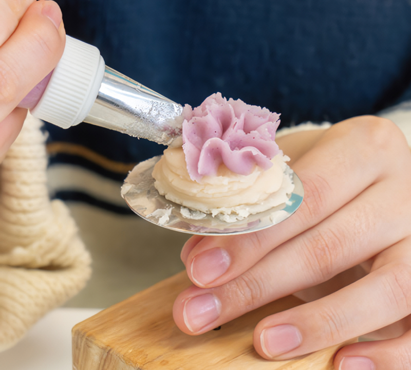 이제 본격적으로 꽃을 만들 차례다. 강사가 짤주머니에 색을 낸 앙금을 넣어 시범을 보였다. “너무 세게 짜면 꽃잎이 두꺼워지고, 약하게 짜면 모양이 흐트러져요. 일정한 힘과 속도로 짜는 게 중요해요.” 손끝의 힘