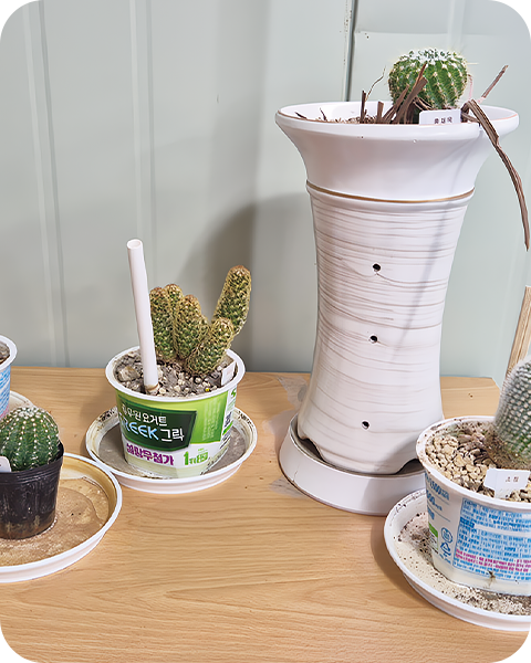 모니터 앞 저의 작은 애착 화분 ‘풀때기’를 소개합니다. 처음에는 단순히 신기하고, 분위기를 바꾸고 싶어서 설치한 화분이지만, 이제는 하루를 함께 시작하고 마무리하는 작은 동료가 되었습니다. 일주일에 한 번씩 ‘풀때기’가 얼마나 자랐나 네임펜으로 표시하는데 매일 보고 있으면 ‘언제 자라나~’, ‘자라긴 하는 걸까?’ 생각하는데 어느새 보면 무럭무럭 잘 자라고 있답니다. 아주 뿌듯해요. ‘풀때기’의 일상은 우리의 일상과 닮은 것 같아요. 매일 같은 자리에서 비슷한 일을 반복하는 것 같지만 그 안에서 보이지 않는 성장이 꾸준히 이루어지고 있어요. 지금 하고 계시는 일을 하면서 발전이 없다고 느껴지더라도 우리 모두 ‘풀때기’처럼 한 걸음씩 성장하고 있을 거예요. 화이팅!