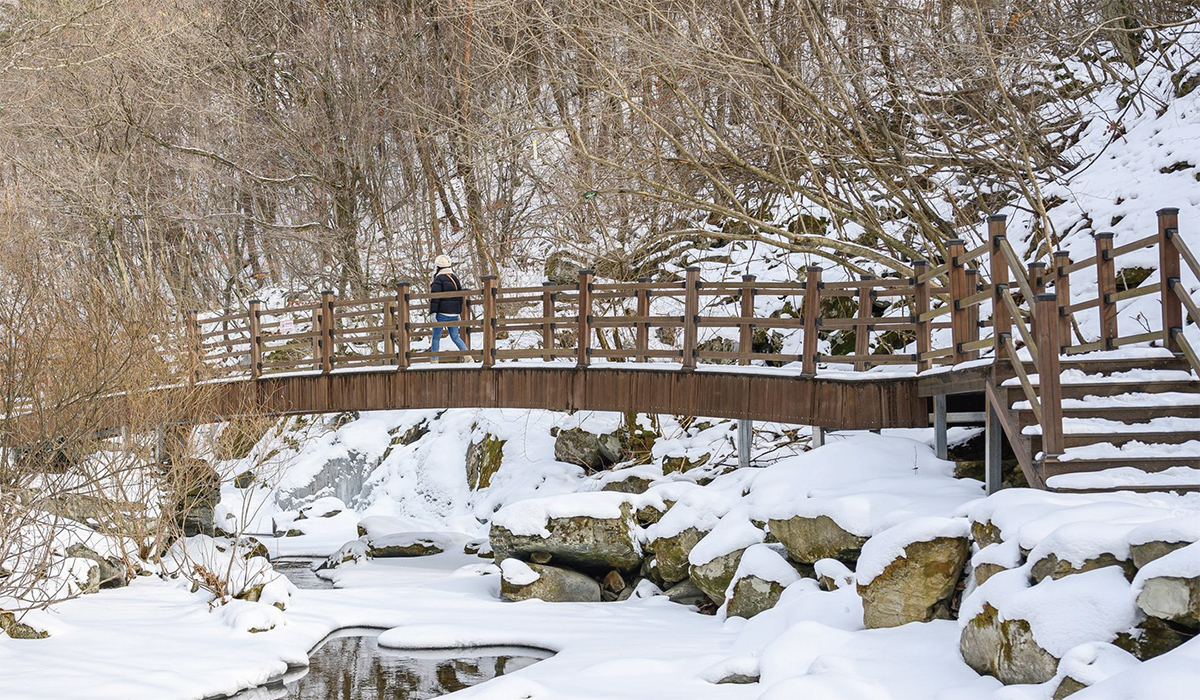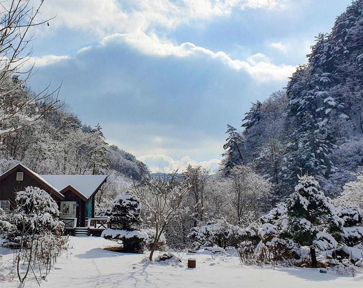 항골 숨바우길이 겨울 힐링 명소로 손꼽히는 이유는 완만한 산책로를 따라 원시림의 숨결을 그대로 느낄 수 있기 때문이다. 겨울이면 산길 위로 소복이 쌓인 눈과 얼어붙은 계곡이 어우러져 한 폭의 수묵화 같은 설경을 만들어낸다. 숨바우길은 항골 계곡을 따라 조성되어 있어 길을 따라 걷는 내내 여름에는 흐르는 물길을, 겨울에는 눈 덮인 계곡과 얼음 사이로 맑게 흐르는 물줄기를 함께 감상할 수 있다. 길이 좁은 구간에는 데크로드가 설치되어 있어 발걸음을 편히 하며 자연의 풍광을 즐길 수 있다. 이곳의 눈과 얼음은 이듬해 4월 무렵까지 남아 있어 한적한 겨울 산책을 계획하기에도 충분하다. 흐르는 계곡과 새하얀 숲길 사이, 폭신한 눈을 밟는 걸음마다 겨울의 고요가 전해진다. 길이 점차 깊어질수록 숲은 더 조용해지고 풍경은 점점 생생해진다.